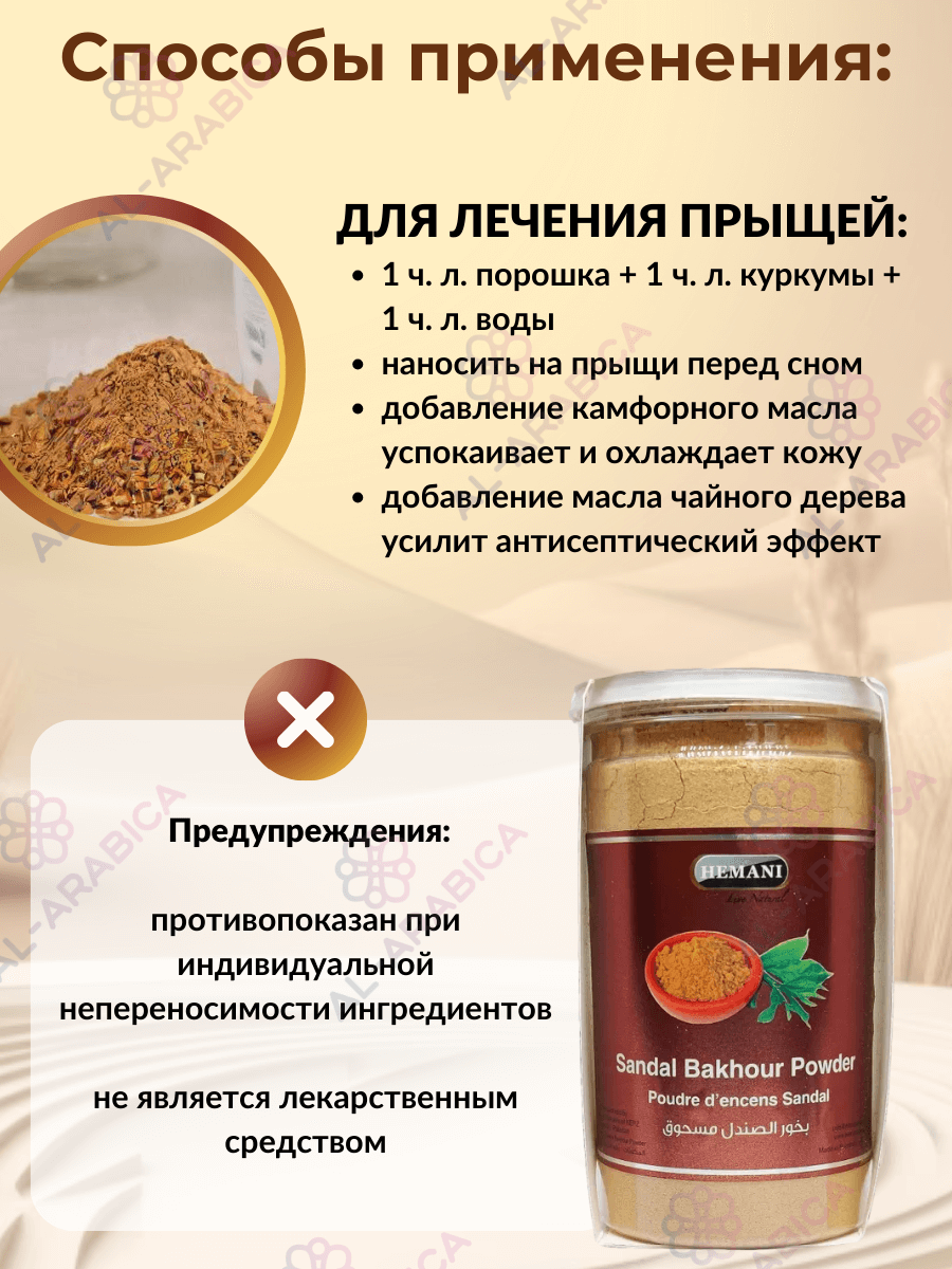 Для ухода за кожей порошок сандала можно добавлять в различные скрабы и маски.