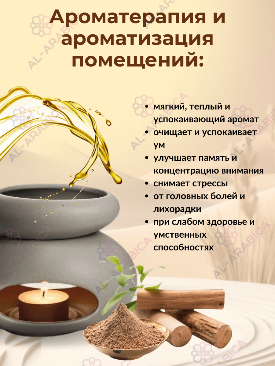 Аромат сандалового дерева также повышает концентрацию внимания, улучшает память, помогает преодолеть состояние депрессии и в целом гармонизирует нервную систему.